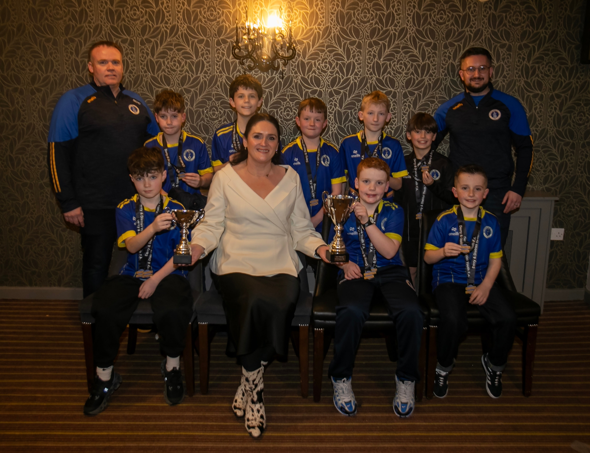 Oxford United u-10s, Winter Cup winners, Summer Cup winners and Championship winners,, pictured at the D&D Annual Awards at the Waterfoot Hotel on Friday night. Included is Councillor Aisling Hutton. At back are coaches Dan Jackson and Shane O'Connor.