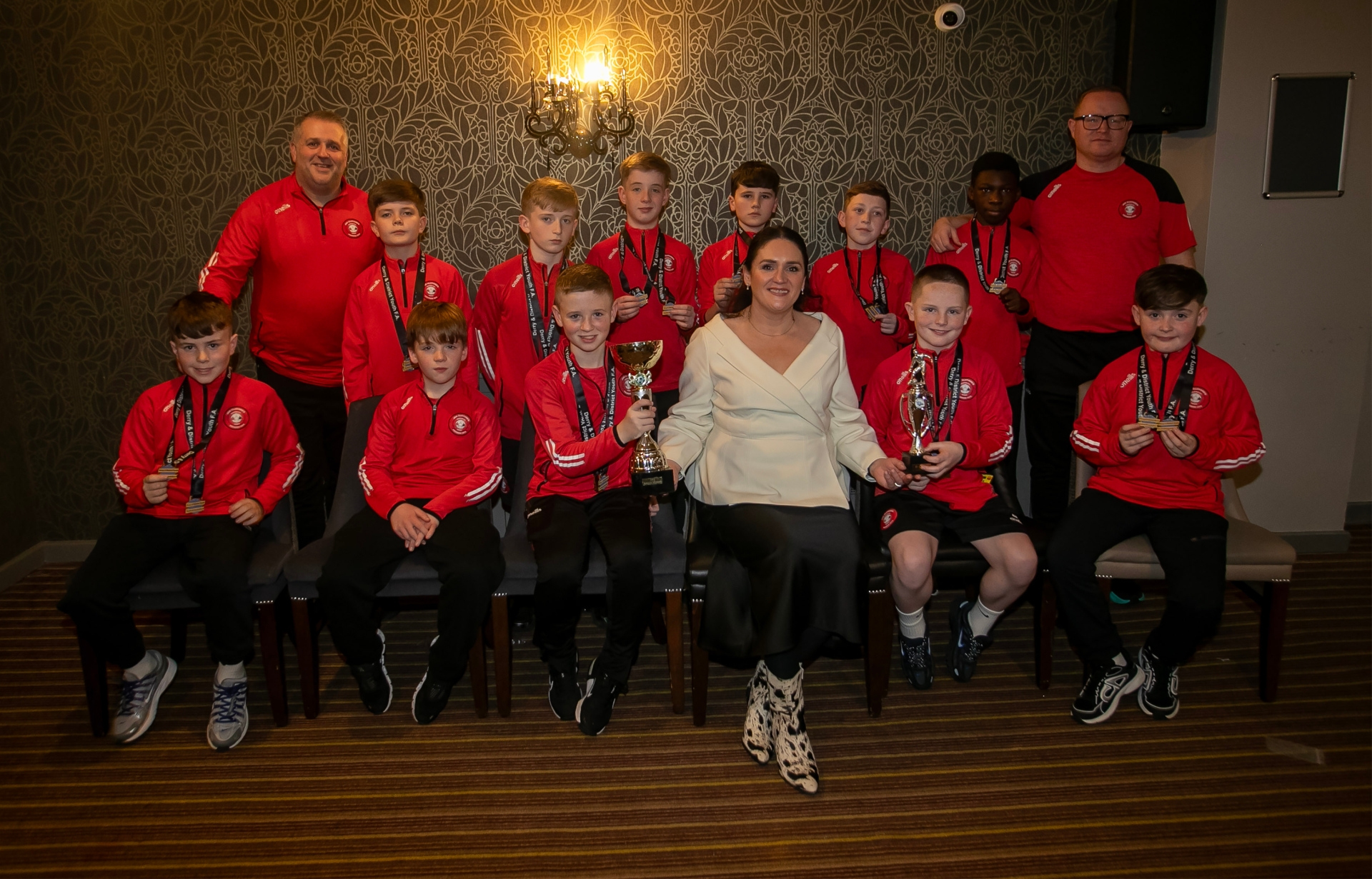 Tristar u-11s, Premier Champions and Winter Cup winners, pictured at the D&D Annual Awards at the Waterfoot Hotel on Friday night. Included is Councillor Aisling Hutton. At back are coaches onnie McDevitt and Pete Doherty. (Photos: Jim McCafferty Photography)