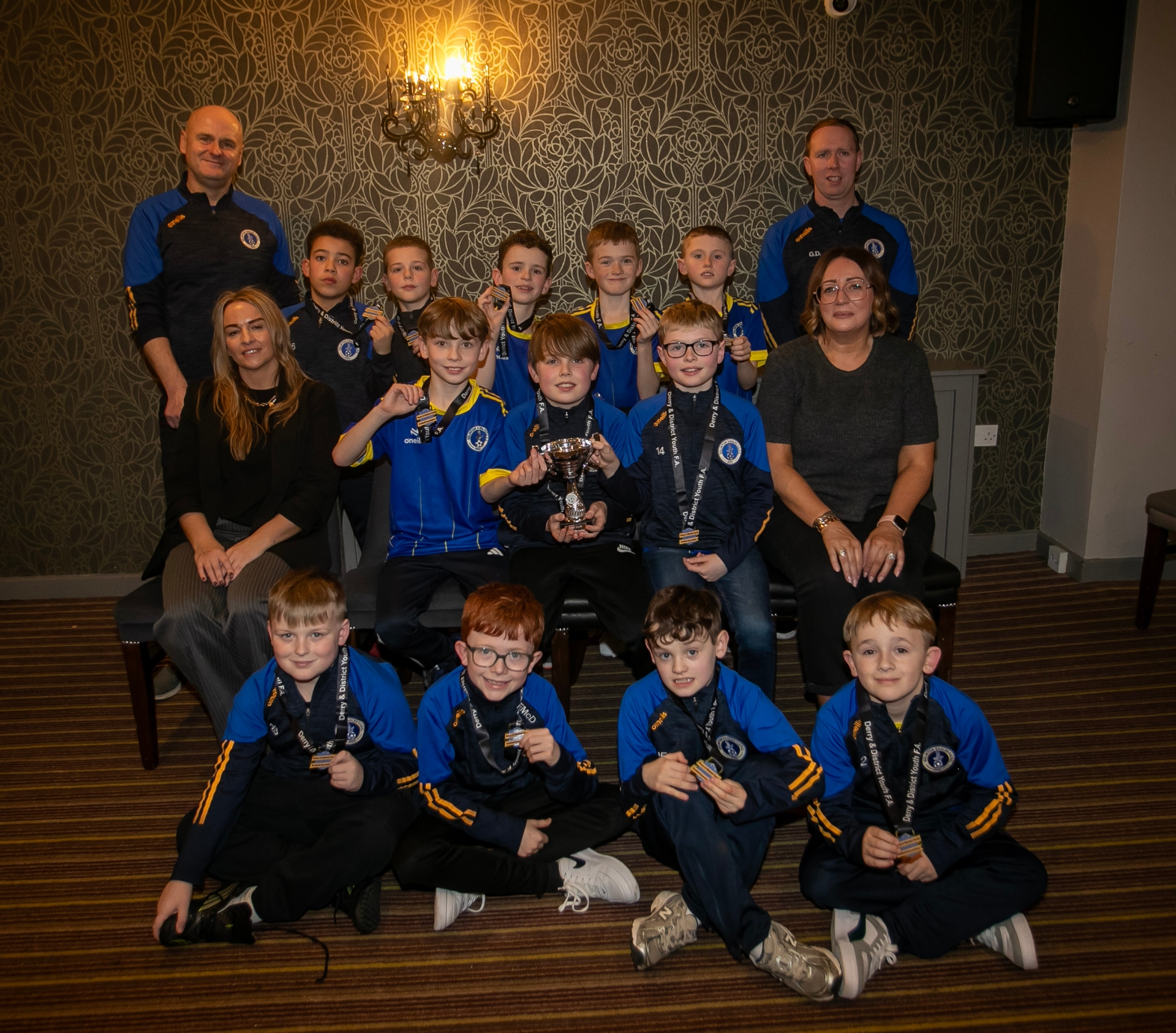Eglinton Eagles u-9s, Summer Cup winners, pictured at the D&D Annual Awards at the Waterfoot Hotel on Friday night. Included are sponsors representatives Denise Crossan, Mortgage Administrator and Geraldine O'Doherty, Head of IT, Derry Credit Union. At back are coaches Gary Dunn and Nathan Walsh.