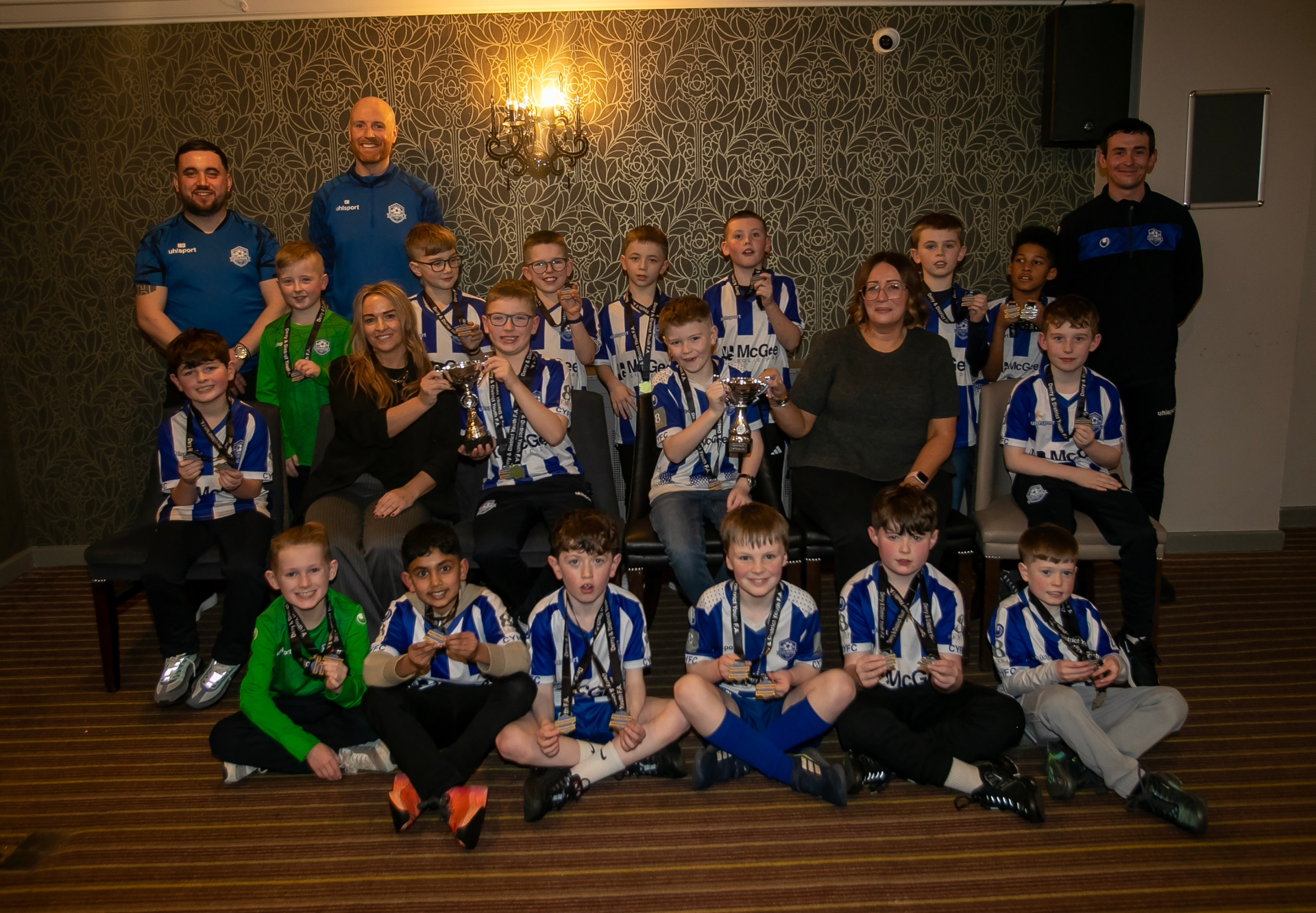 Culmore FC u-9s, Summer Cup and. Winter Cup winners, pictured at the D&D Annual Awards at the Waterfoot Hotel on Friday night. Included are sponsors representatives Denise Crossan, Mortgage Administrator and Geraldine O'Doherty, Head of IT, Derry Credit Union. At back are coaches Ciaran Black, Michael Devine and Mark Young. (Photos: Jim McCafferty Photography)
