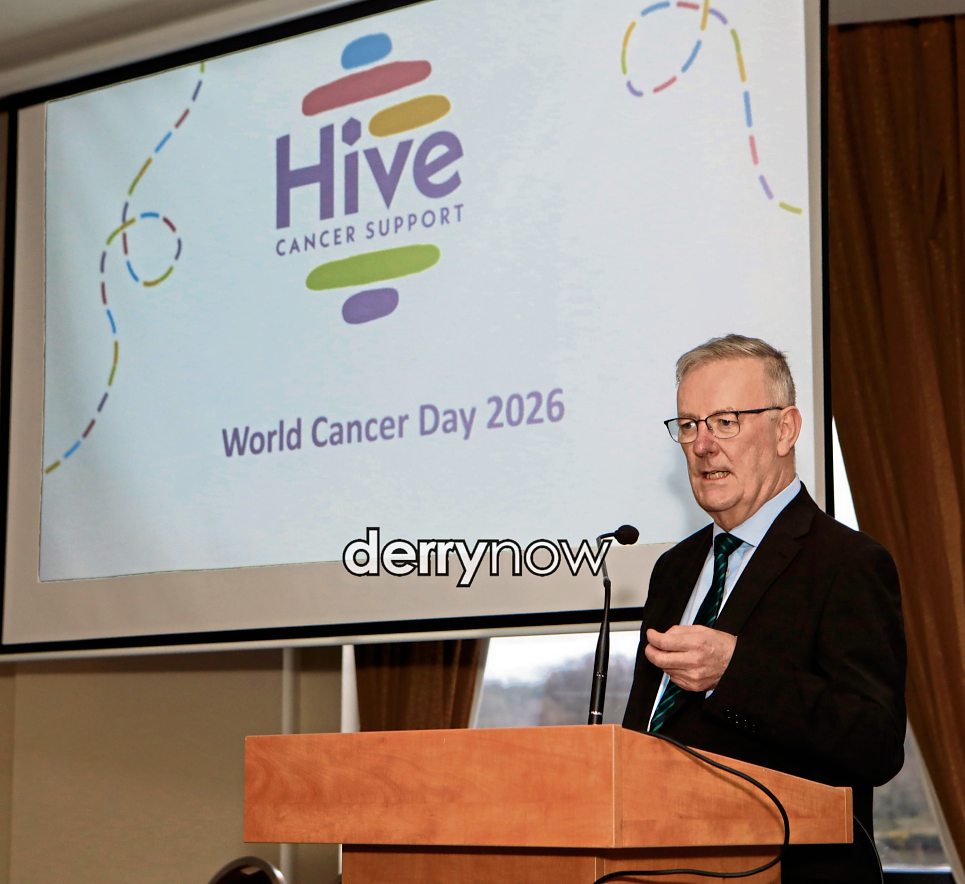Minister for Health, Mike Nesbitt speaking at the Hive Cancer Support Conference “World Cancer Day 20226 United by Unique” and held in the City Hotel. (Photos - Tom Heaney, nwpresspics)