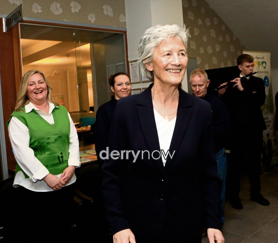 Irish President Catherine Connolly on her arrival at St. Columb’s Park House.