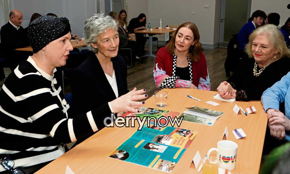 Irish President Catherine Connolly chatting with St. Columb’s Park House staff during her visit to St. Columb’s Park House to meet with YouthAction NI, on Friday. (Photos - Tom Heaney, nwpresspics)