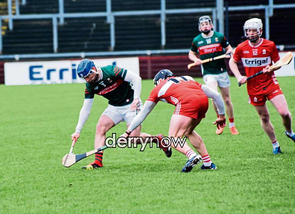 Derry's Deaghlan Foley closes in on Eoghan Collins. (Photos - Kerrie Quinn, nwpresspics)