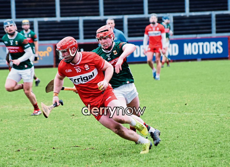 Derry's Michael Lynch gets away from Mayo's Michael Gallagher.