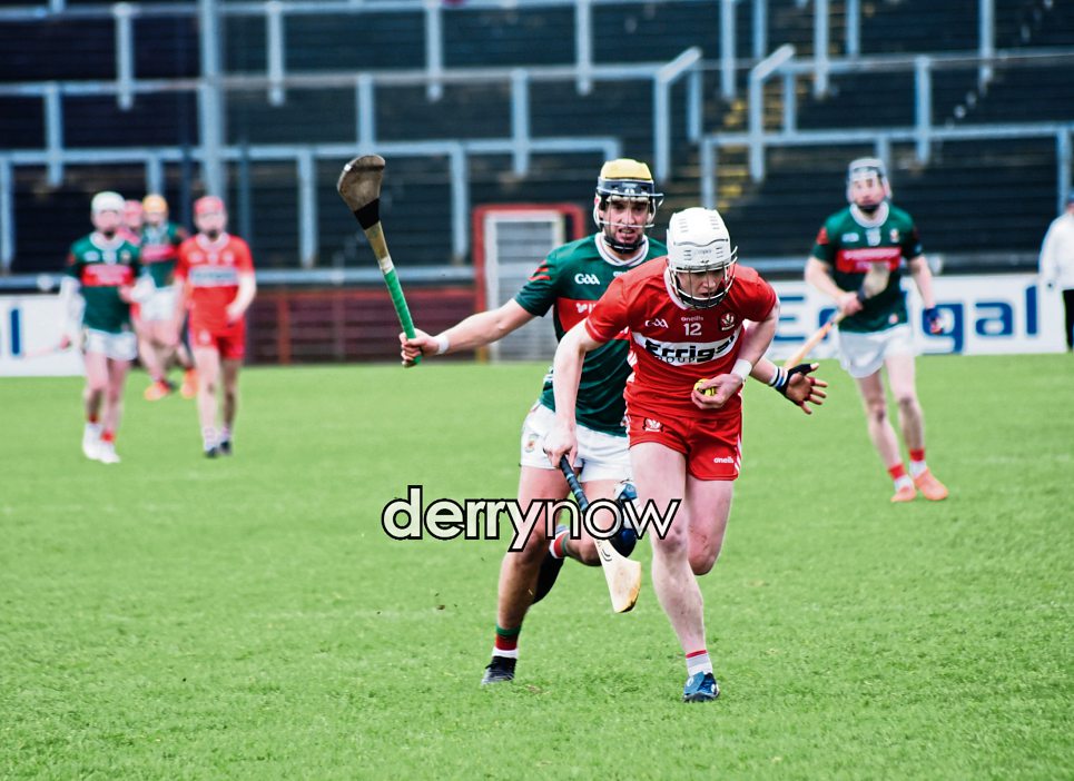 Mayo's David Kenny holds off a challenge from Darragh McGilligan.