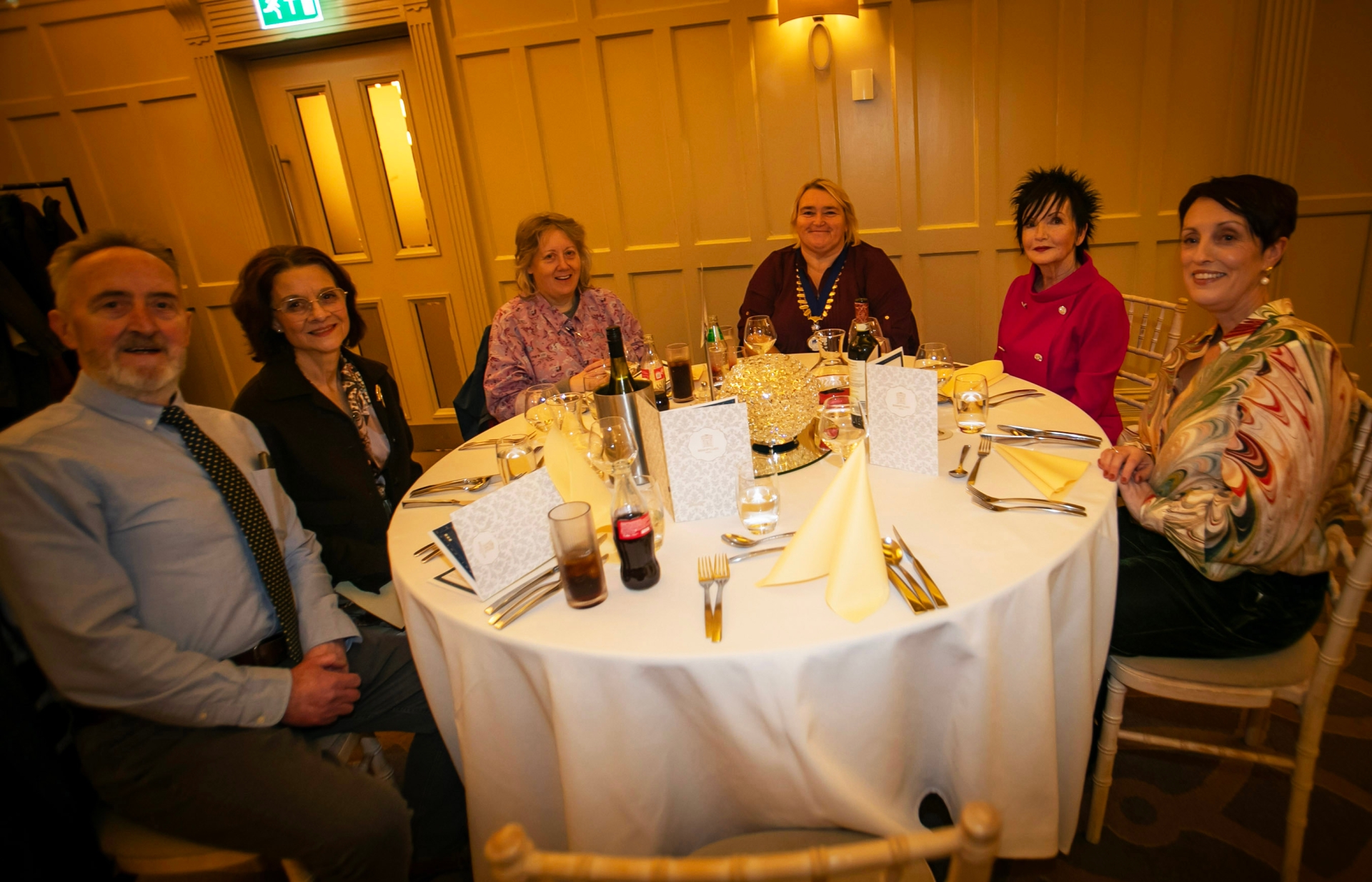 Mary Crumley pictured with her husband Cathal, Rosemary O'Doherty, Delma Boggs, President, Derry Credit Union, Patricia Doherty, Vice President, Irish League of Credit Unions and Jennifer Turner at Tuesday's function in the Bishop's Gate Hotel, Derry. (Photos: Jim McCafferty Photography)