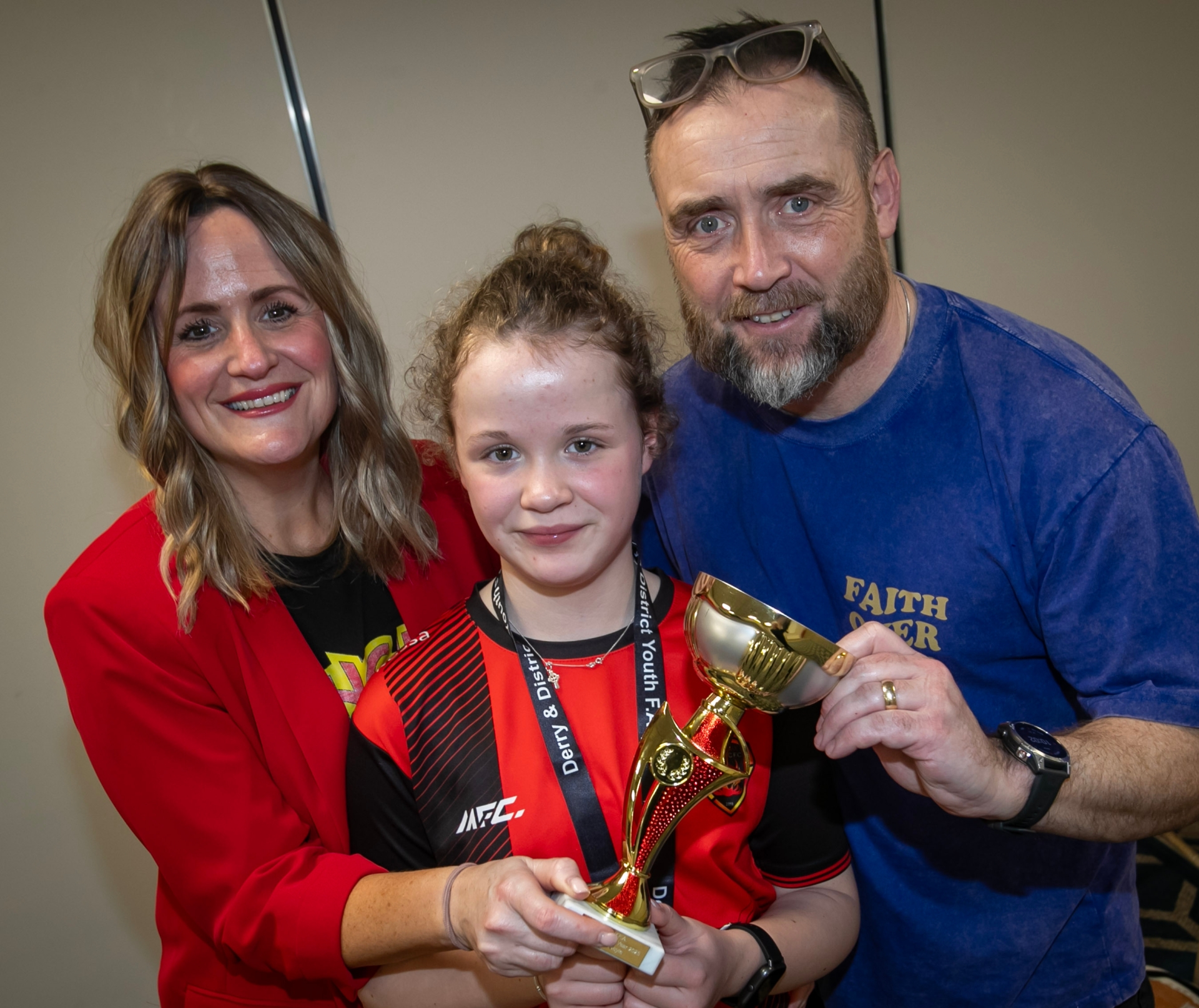 Phoenix Swifts u-11 player Rossa Coyle celebrates with her family.