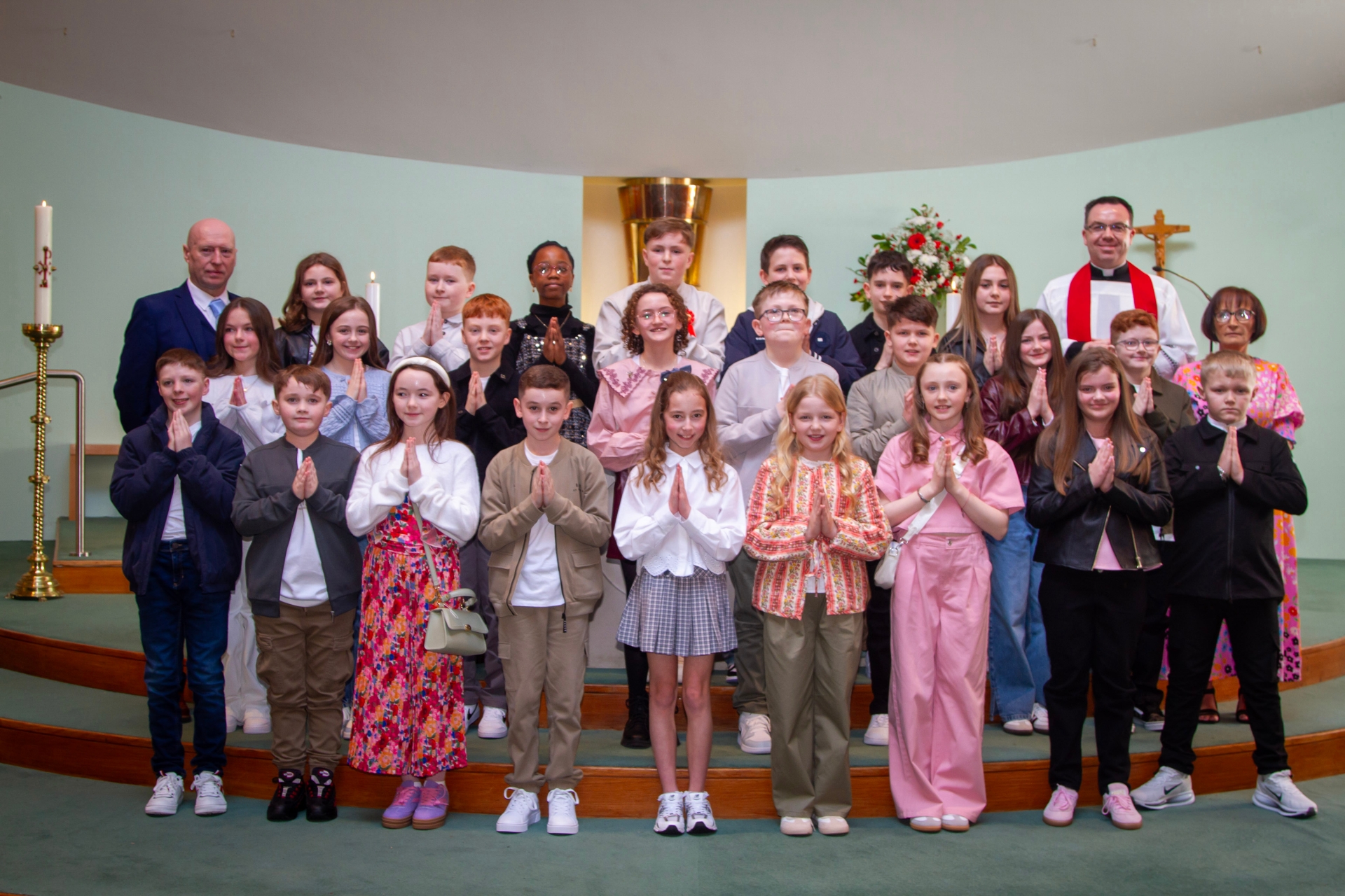Mr. McGuigan's Y7CG class from Sacred Heart PS, who received the Sacrament of Confirmation from Fr. Patrick Lagan at the Church of the Immaculate Conception, Trench Road, Waterside. Included in photo is Ms. Elaine Oakley, Classroom Assistant.. (Photo: Jim McCafferty Photography)