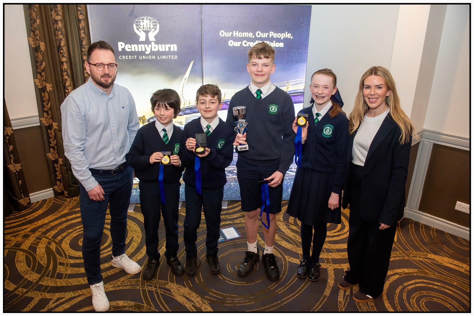 Competition B Winners St.Patricks P.S (L to R-Frank Doherty (CEO), Joe, Ben, Darragh, Edith & Laura B