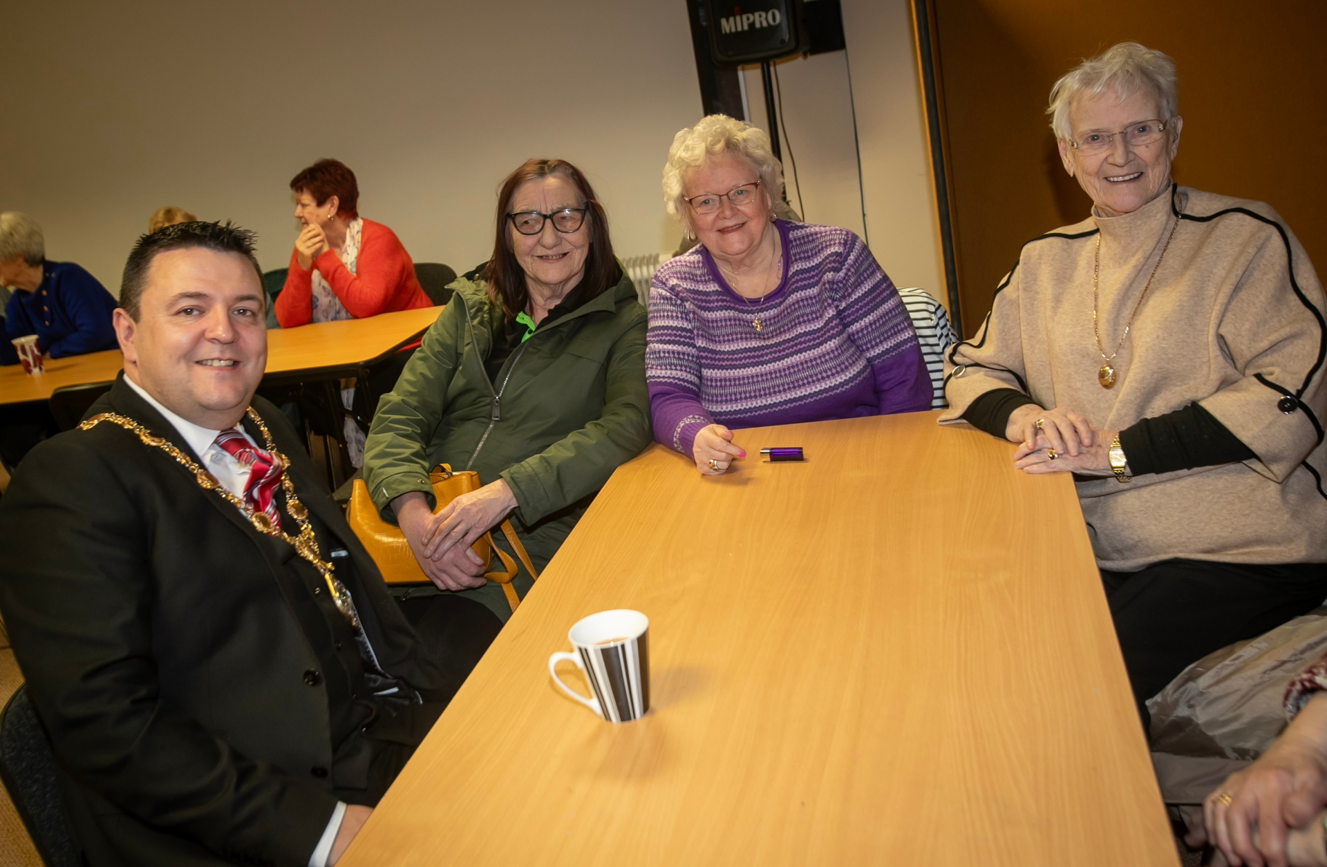 The Mayor Ruairi McHugh pictured with some of the ladies at the Rath Mor Women's 50+ Club on Tuesday.