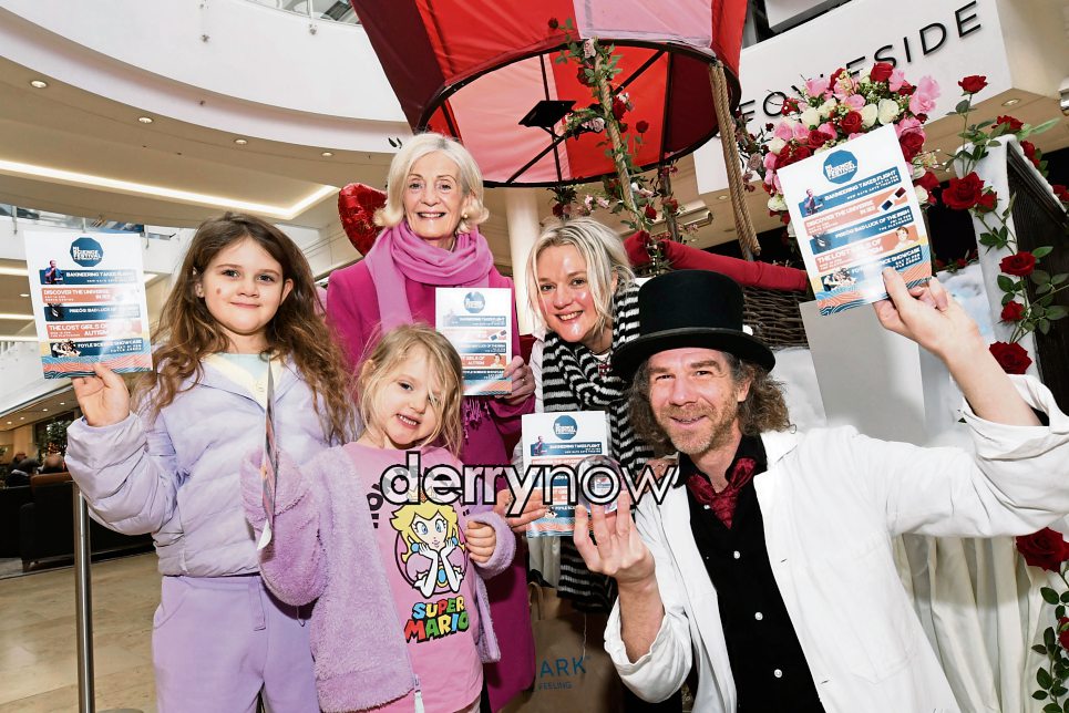 Edie and Izzy O'Hara enjoyed meeting Professor Lukey Luke from In Your Space when he visited the Foyleside Shopping Centre on Thursday to promote the NI Science Festival. Included is their mum, Suzy, and granny, Marion Ross.