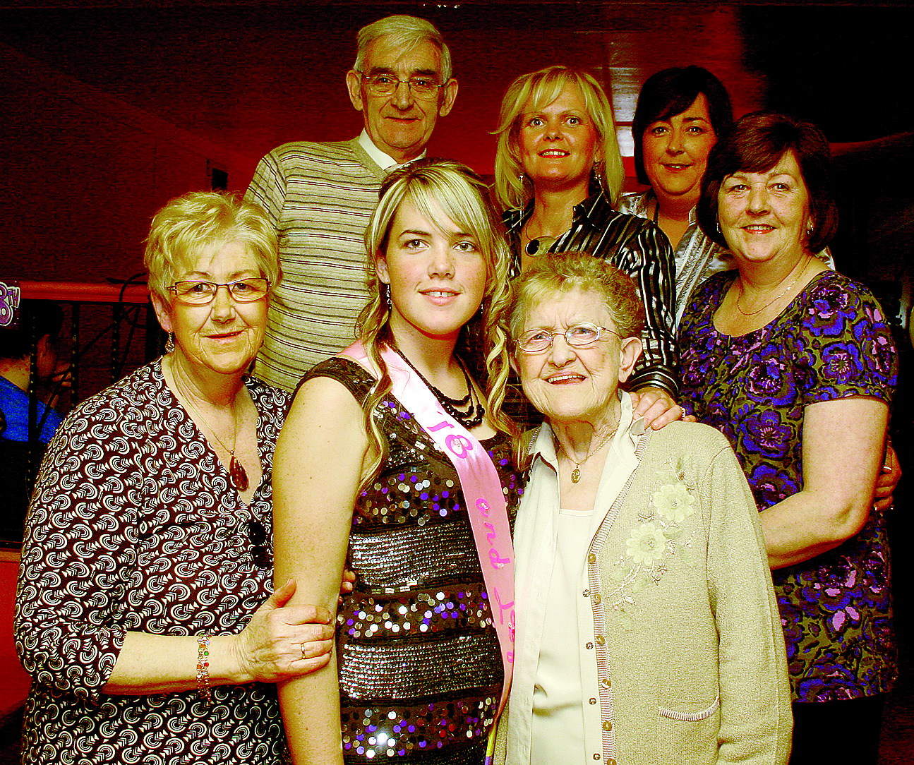 Laura, front centre, with her granny Agnes Harkin, aunts and uncle at her party.