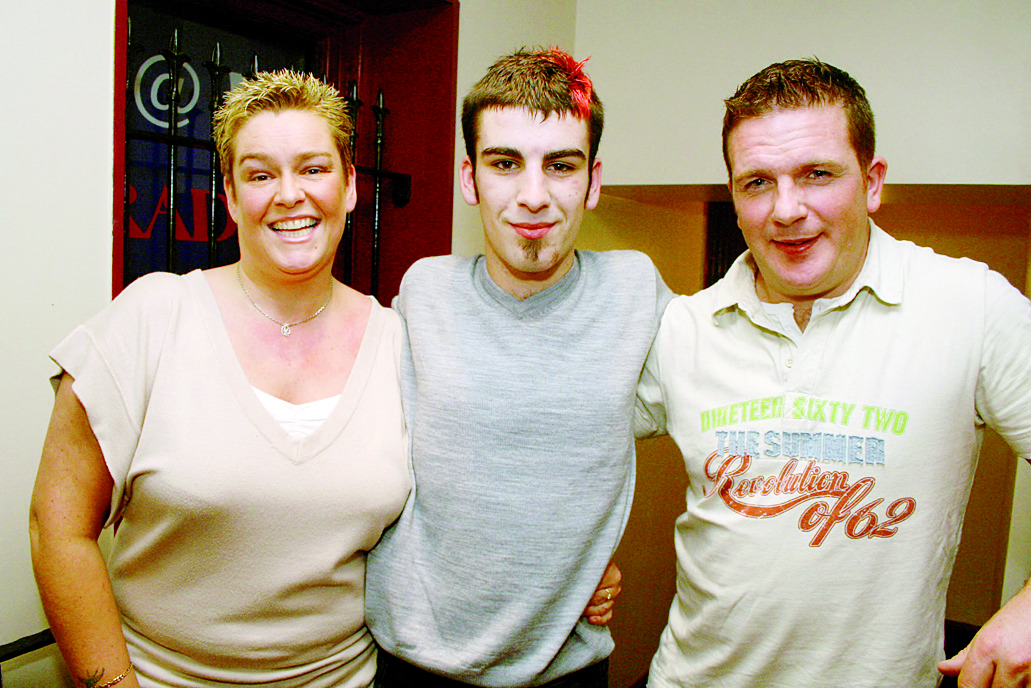 18 year old Lee Kelly with his mum Deirdre and dad Jason.