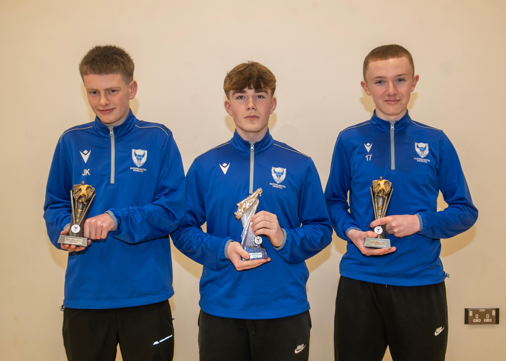 Main prizewinners from the Oxford United 2011s awards on Monday night. From left, Jayden Kavanagh, Ben McGeady and Cadhan Downey.