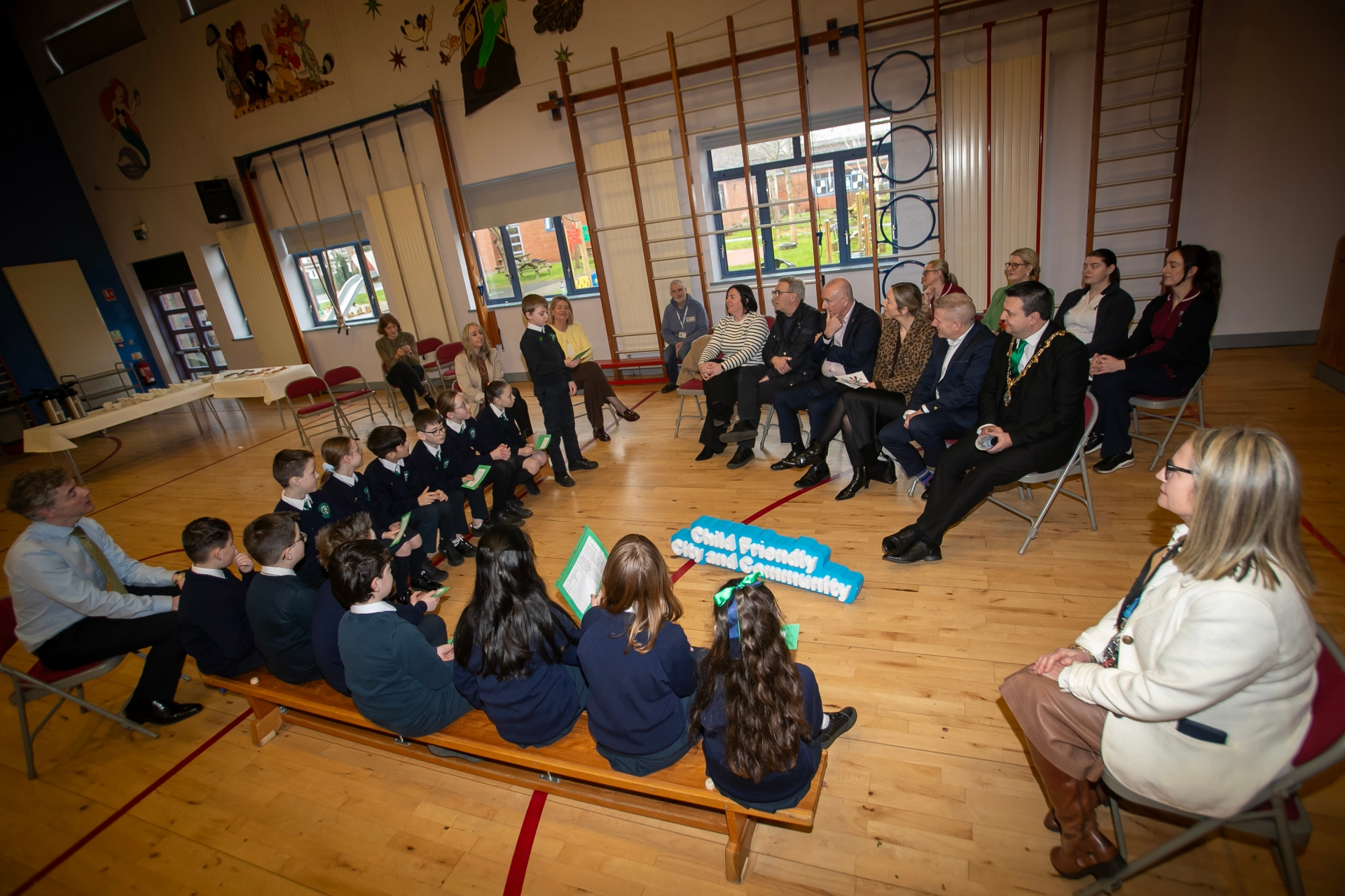 Q&A SESSION. . . .P7 pupils at St. Patrick's Primary School, Pennyburn, Derry putting questions to the dignitaries during Wednesday's launch. (Photos: Jim McCafferty Photography)