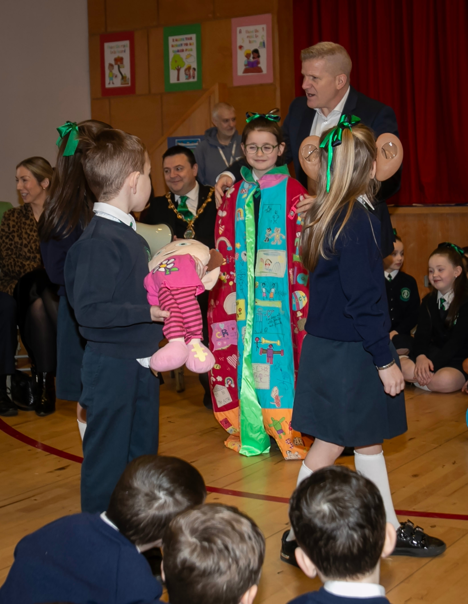 Children's Commissioner Chris Quinn working with some of the pupils during Wednesday's launch in St. Patrick's Primary School, Pennyburn, Derry.