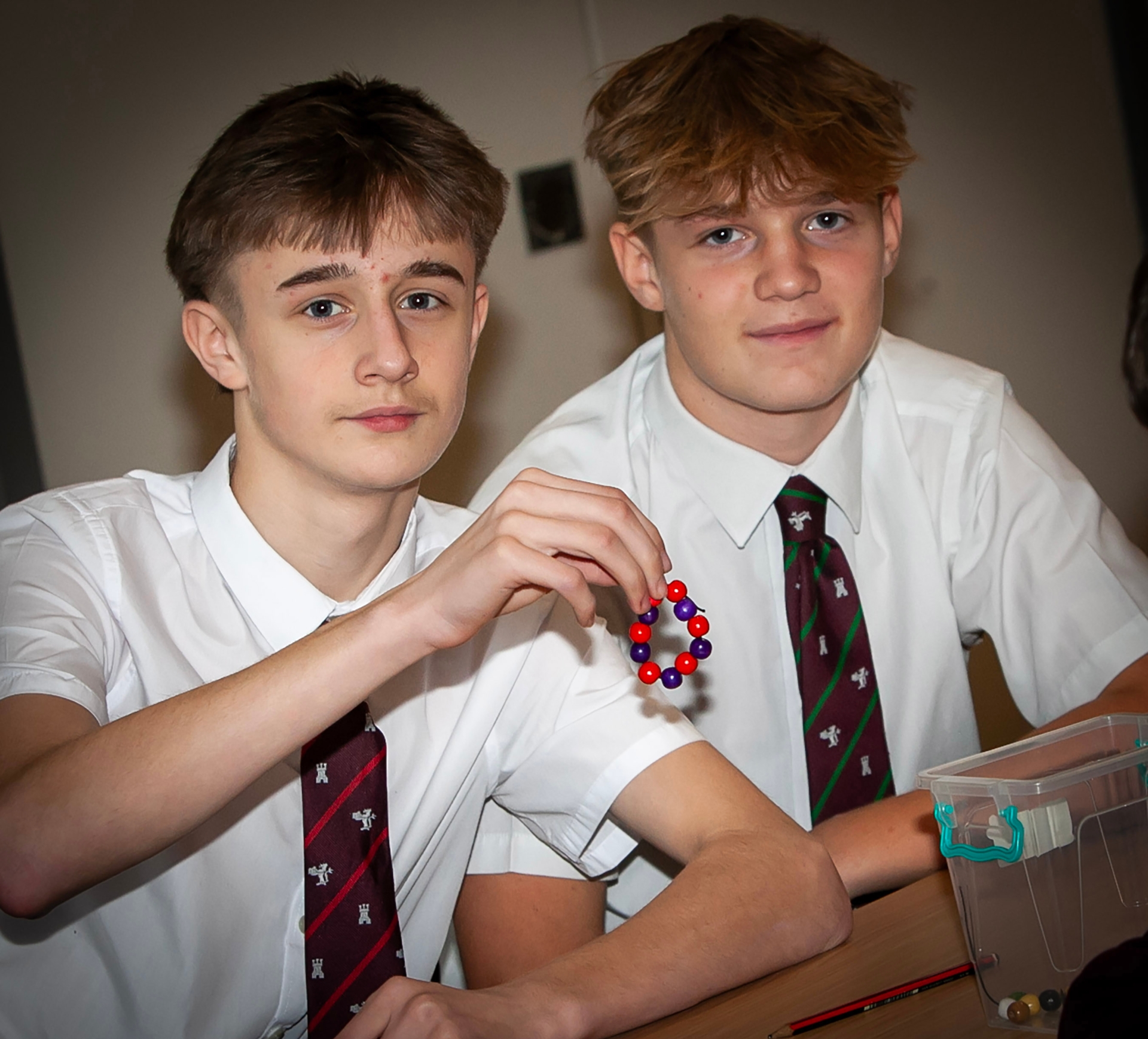 Students Charlie McGee and Jobie Gamble with some of their wares.
