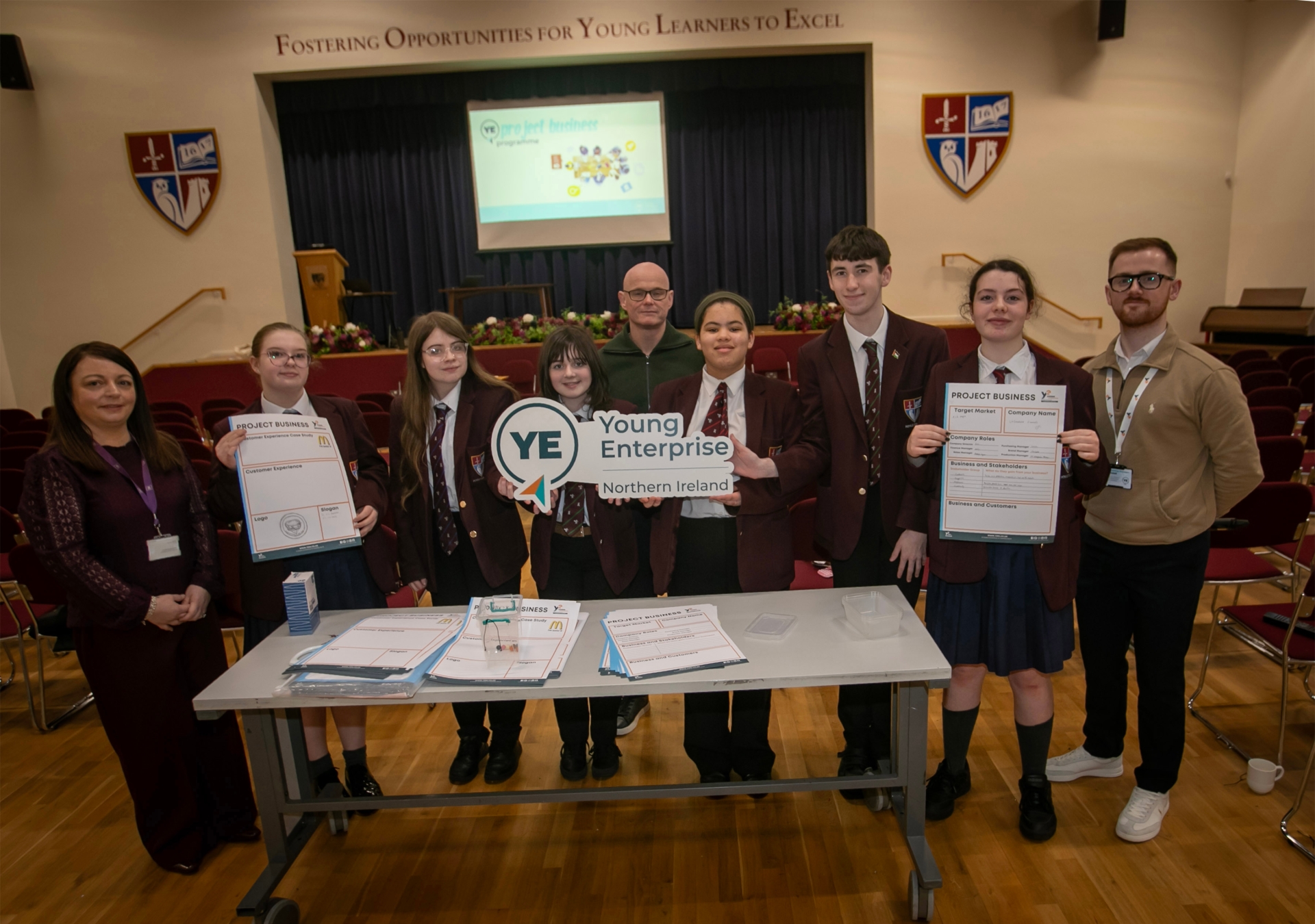 'PROJECT BUSINESS' WINNERS!. . . . . . Winning group of students 'Unbreakable Diamonds' pictured at Foyle College's AIB/Young Enterprise NI 'Project Business' workshop last week. The event saw 13-15 year old students empowered by deepening their understanding of business, economics and enterprise while helping them also develop key work-readiness skills. Included are Stephanie Carson, Manager, AIB, Mr. Dylan Gallagher, teacher, and Mr. Leo Nicholl, Young Enterprise NI. (Photos: Jim McCafferty Photography)