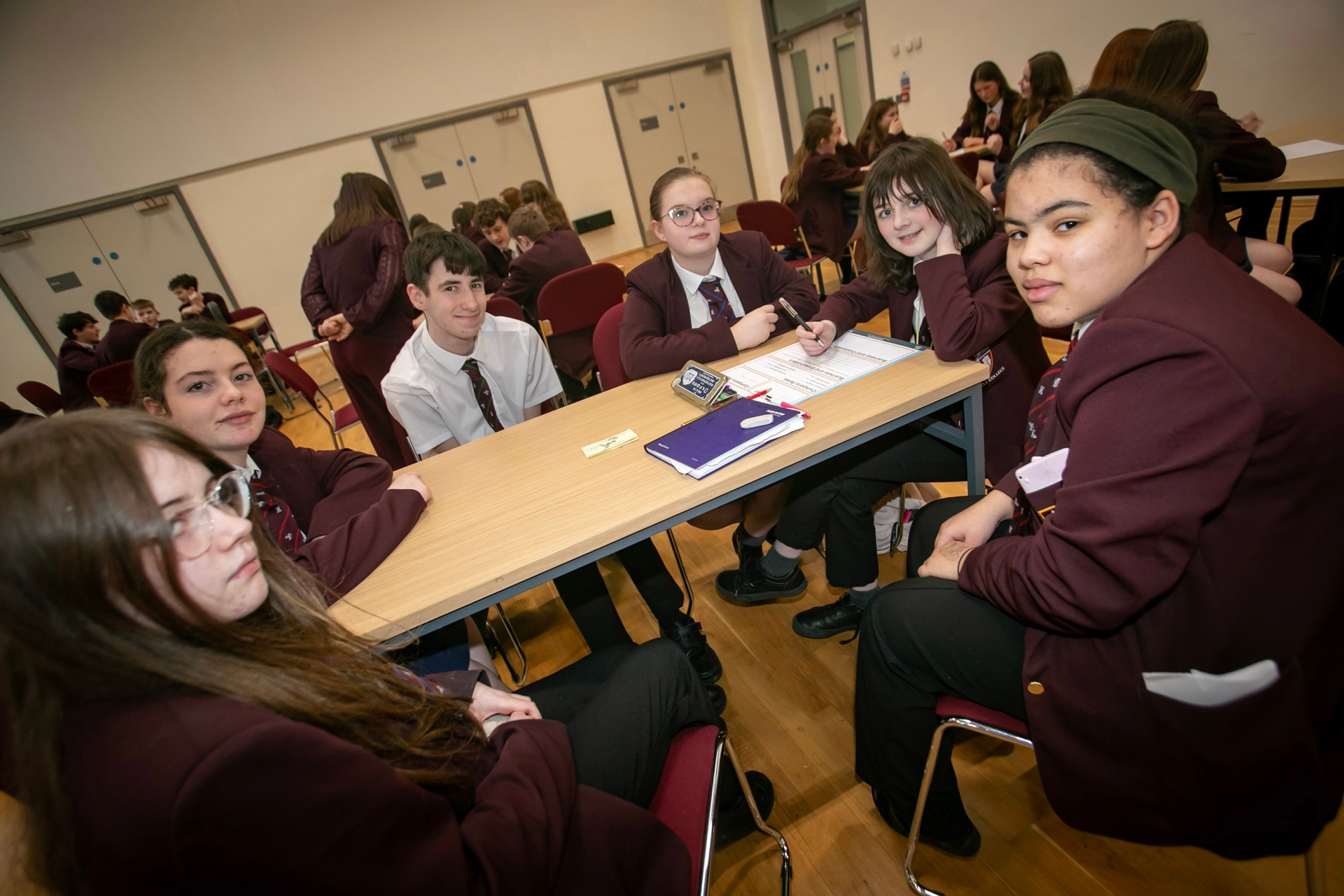 A table of the Foyle College students who participated in one of the workshops at the AIB/Young Enterprise NI event.