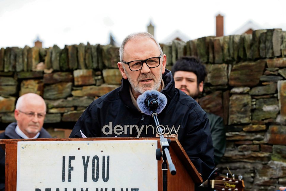 Billy Page speaking at the 40th commemoration of Oglach Tony Gough, held at the Shantallow.