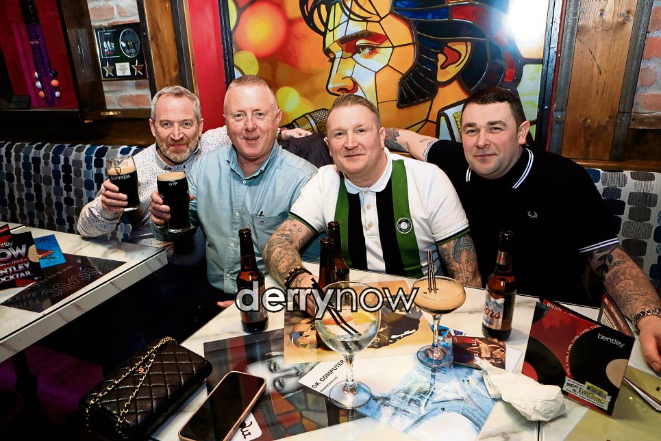 Ruairi Breslin, joint proprietor in the new look Bentley, with from left, Patrick (PM Lighting), Kevin and on right Declan.