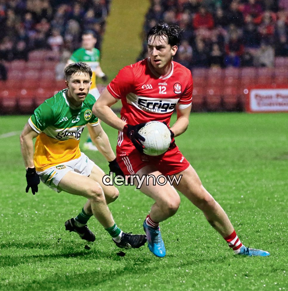 Derry’s Paul Cassidy looks for support.