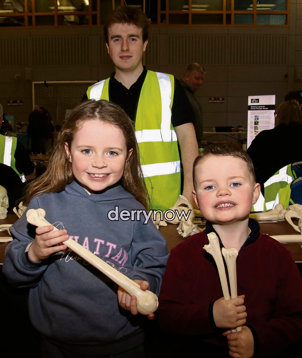 Brody McEvoy from CAPNI, with Evie and Charlie checking out skelton bones.