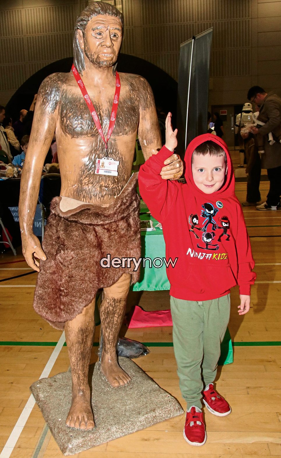 Faron with a model of the Neanderthal man at The Foyle Science Showcase.