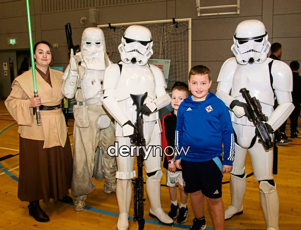 Adam and Harry with Storm Troopers from Star Wars at The Foyle Science Showcase held in The Foyle Arena. (Photos - Deirdre Heaney, nwpresspics)