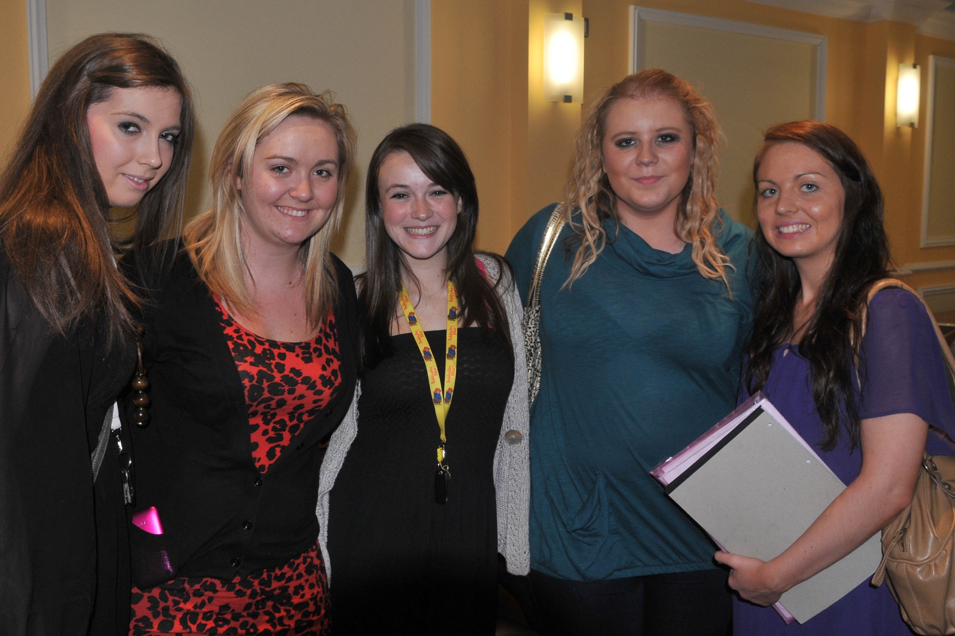Pictured at the University of Ulster Law School reception for freshers at the Magee Campus are from left, Claire Murphy, Gemma Harris, Sophie Butler, Christine Russell and Charlene Elliott. (Photo: Martin McKeown)