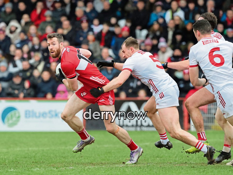 Derry's Niall Loughlin under pressure from Maurice Shanley.