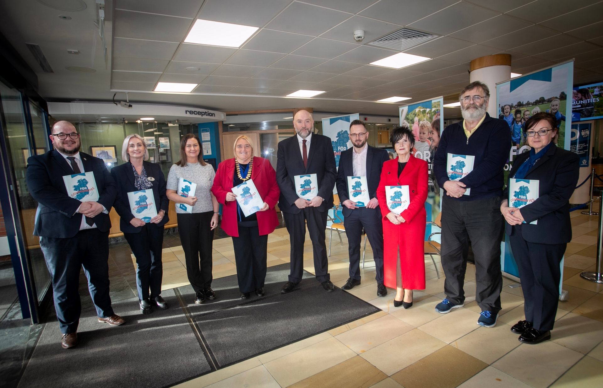 COMMUNITY IMPACT REPORT LAUNCH. . . . . .Group pictured at Derry Credit Union on Thursday afternoon last for the launch of the Irish League of Credit Unions 'First Community Impact Report for Credit Unions.' Included at front, from left are Christopher Kerrigan, committee, Clare McLaughlin, Head of Operations, DCU, Roisin O'Reilly, CEO, Waterside Credit Union, Delma Boggs, President, Derry Credit Union, Martin Fisher, Head of Northern Ireland, Irish League of Credit Unions, Frank Doherty, CEO, Pennyburn Credit Union, Patricia Doherty, Vice President, Irish League of Credit Unions, Sean Hegarty, Acting CEO, Derry Credit Union, and Karen Doran, Finance Manager, Derry Credit Union. (Photos: Jim McCafferty Photography)