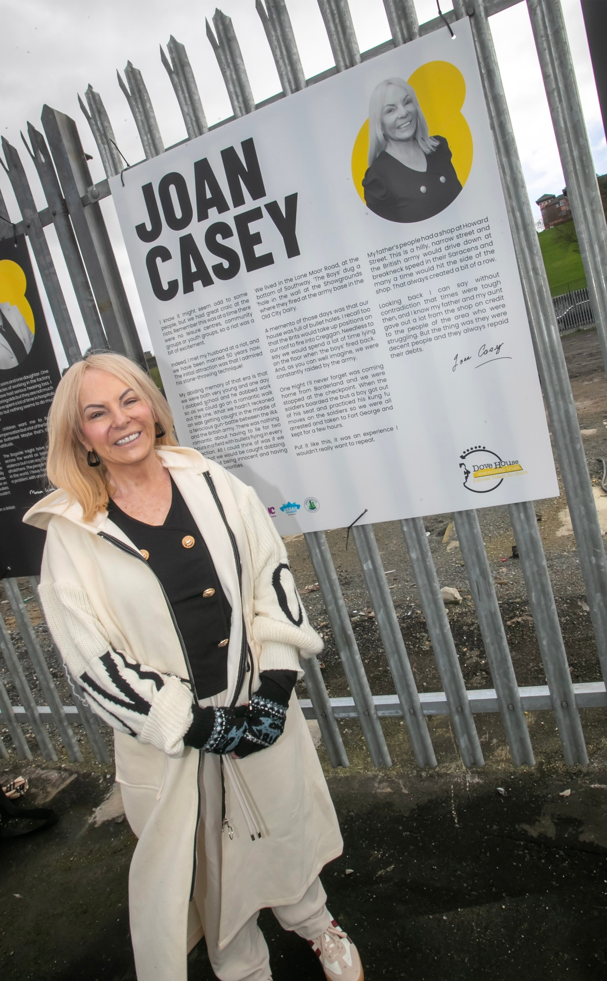 Joan Casey pictured beside her story at Monday's 'Dove Tales' launch.