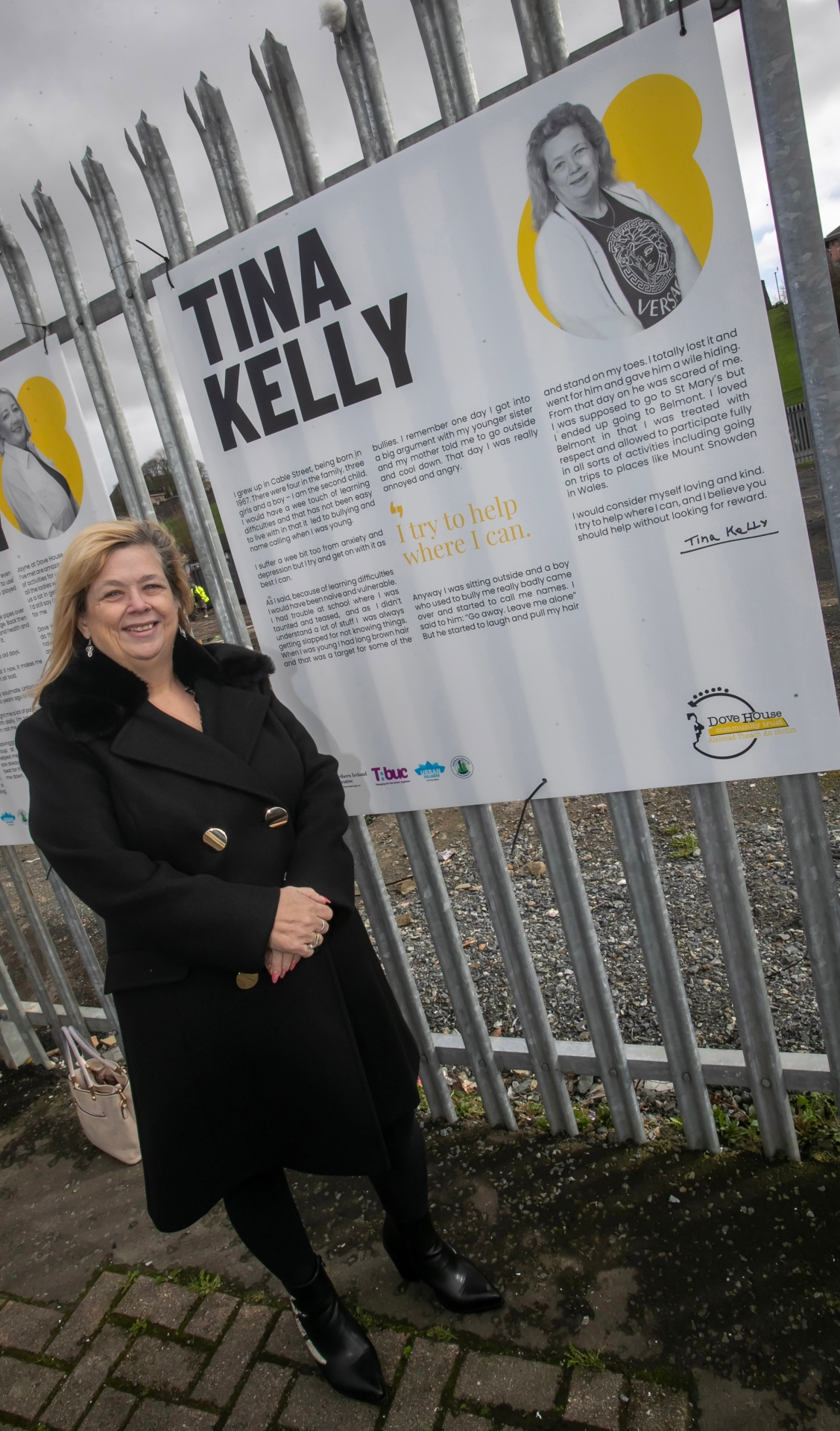 Tina Kelly pictured beside her story at Monday's 'Dove Tales' launch.
