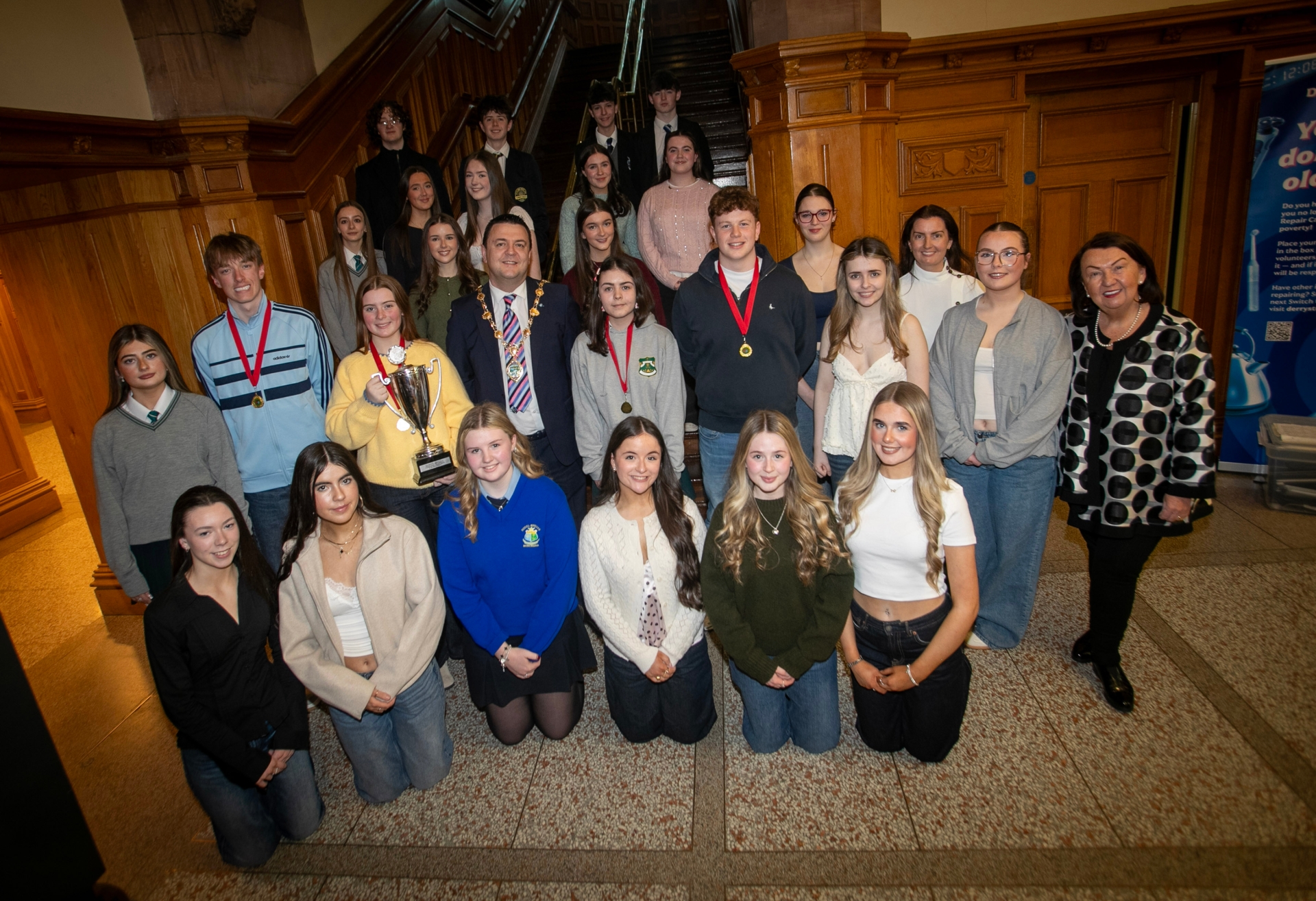 Global Mercy Award Winners from the Foyle Speech and Drama pictured at Tuesday's graduations in the Guildhall. Included are the Mayor, Ruairi McHugh and Sandra Biddle.