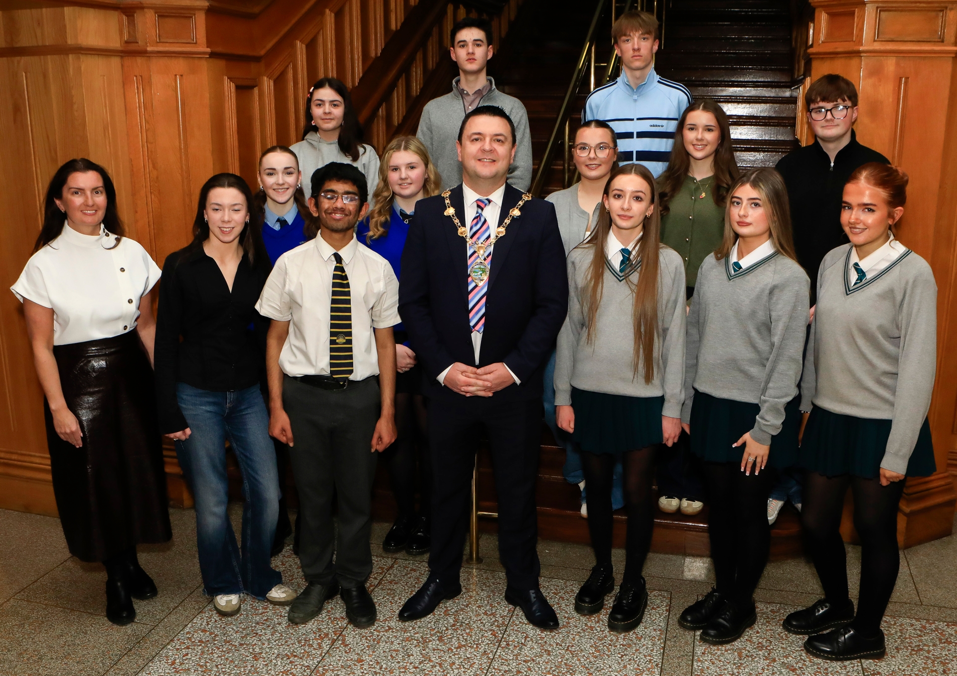 Mayor Ruairí McHugh with the Wednesday class pupils at the Foyle School of Speech and Drama Graduation held in the Guildhall.