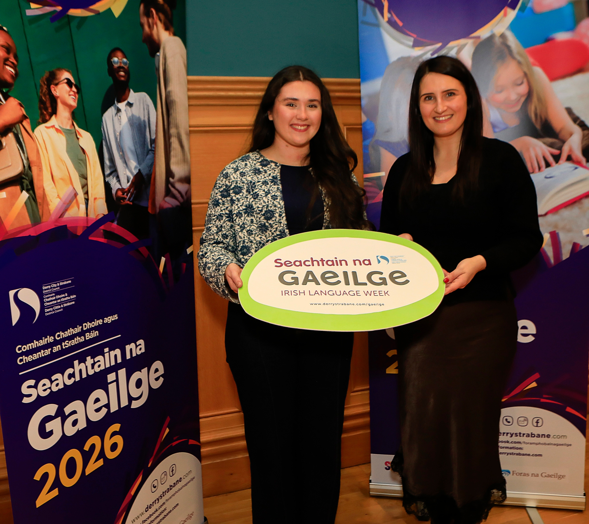 Mo Cheol Thú Song Workshop with Róise Ní Mhurchú - Erin Hamilton, Irish Language officer, DCSDC with Róise Ní Mhurchú, award winning singer who lead the Irish Language singing workshop as part of Irish Language Week held in the Whittaker Suite, Guildhall. (Photos - Tom Heaney, nwpresspics)