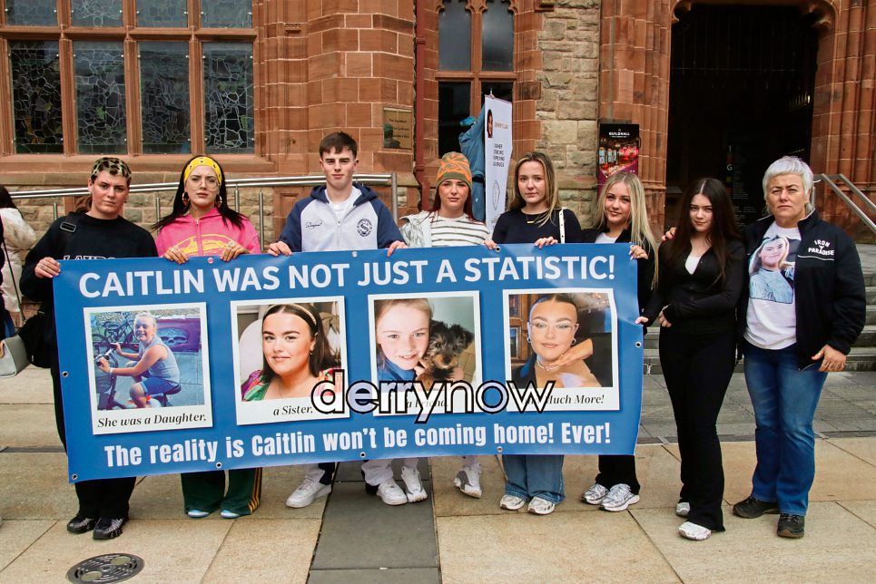 The family of Caitlin holding a banner at the Anti-drugs rally, Guildhall Square. (Photos - Deirdre Heaney, nwpresspics)