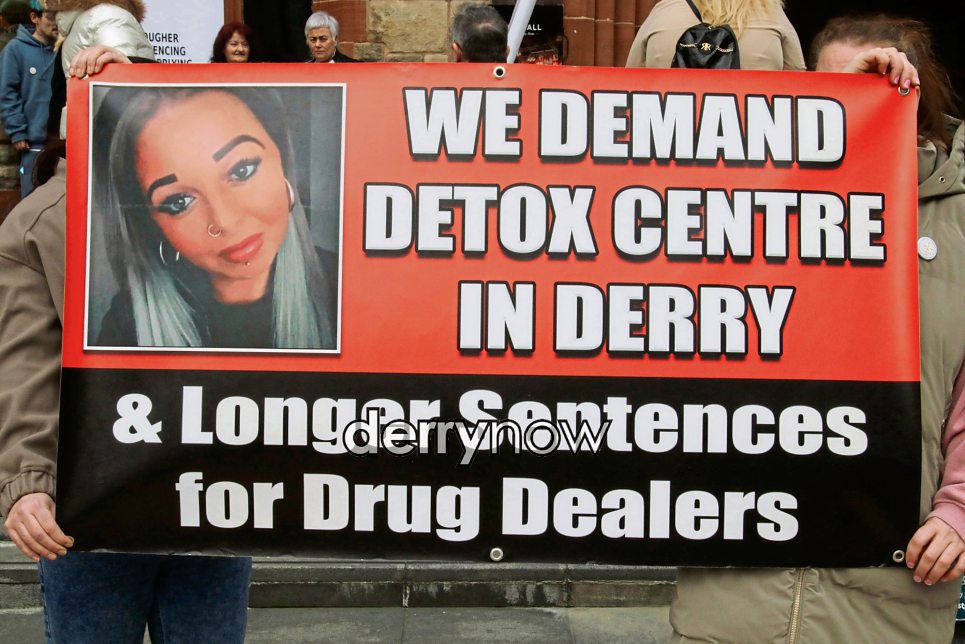 Protesters with a banner calling for a Detox Centre in Derry.