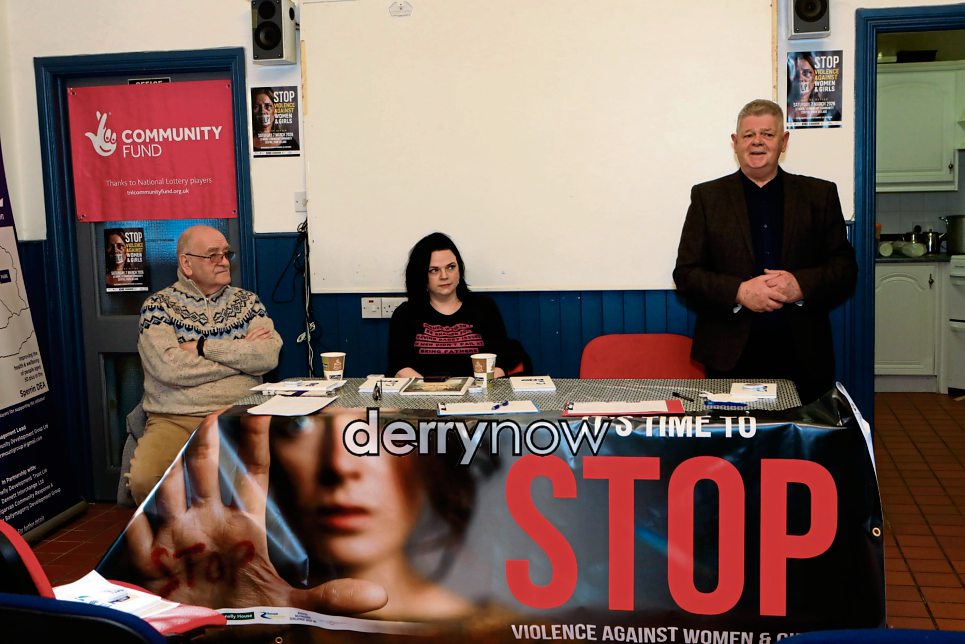 Min McCann, manager Park Community Centre, speaking at the meeting, “Standing United in the Fight Against Gender-based Violence”.
