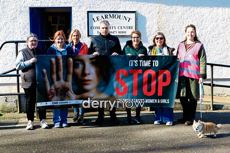 Sinn Fein Councillor Fearful Leonard with members of the Glenelly Development Trust who took part in the walk “Standing United in the Fight Against Gender-based Violence”, through Park Village on Saturday.