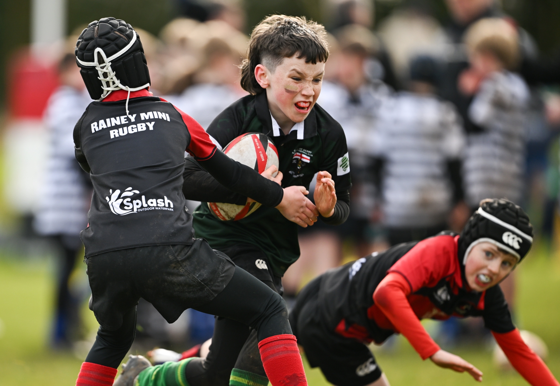 Action during the Aviva Minis Rugby Festival between Rainey RFC and City of Derry RFC at Rainey RFC in Magherafelt. (Photos: Ramsey Cardy, Sportsfile)