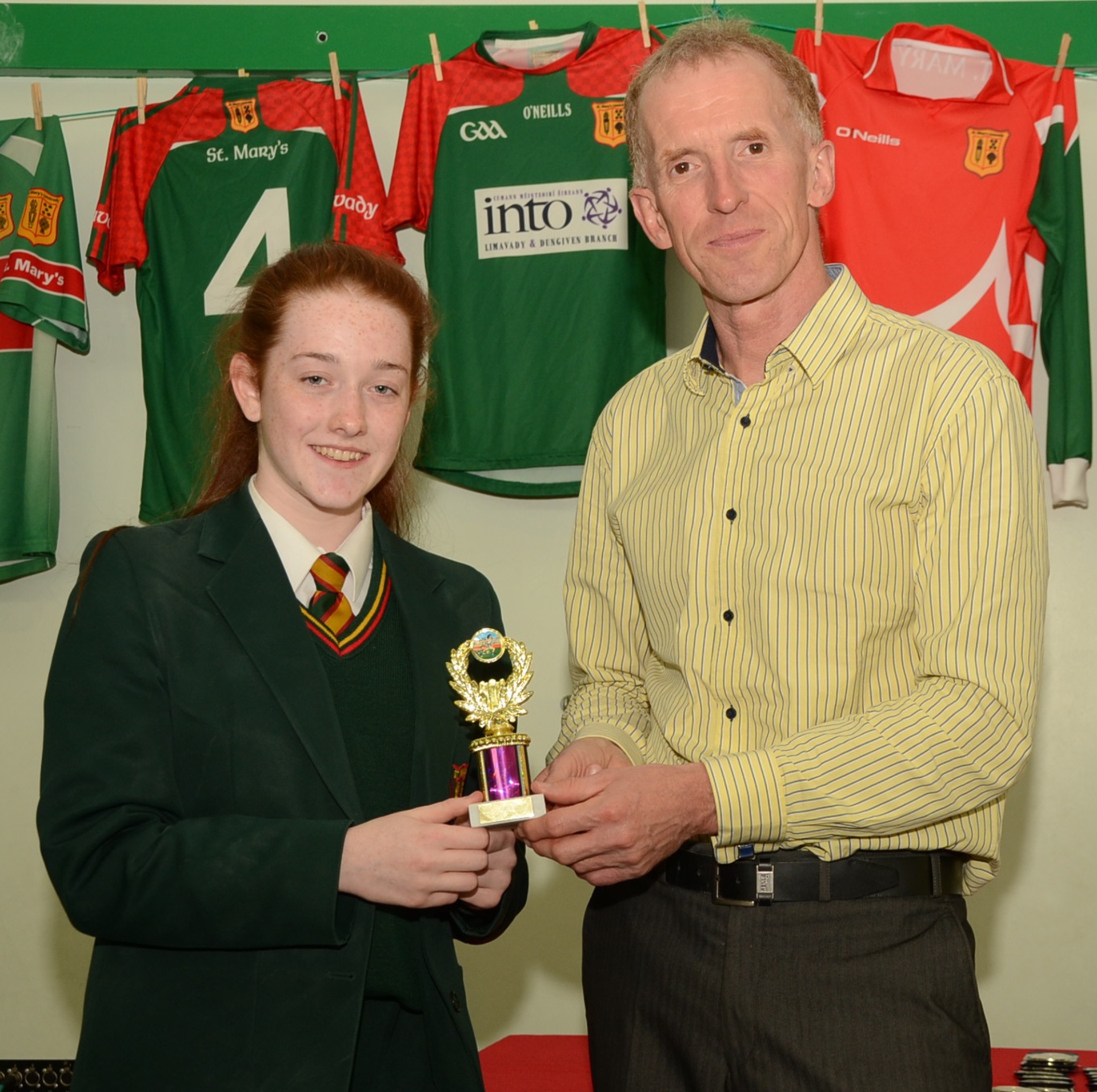 Peter Jack with St. Mary's student Rhianna Curran - Four times winner of the Derry Vocational Schools Cross Country