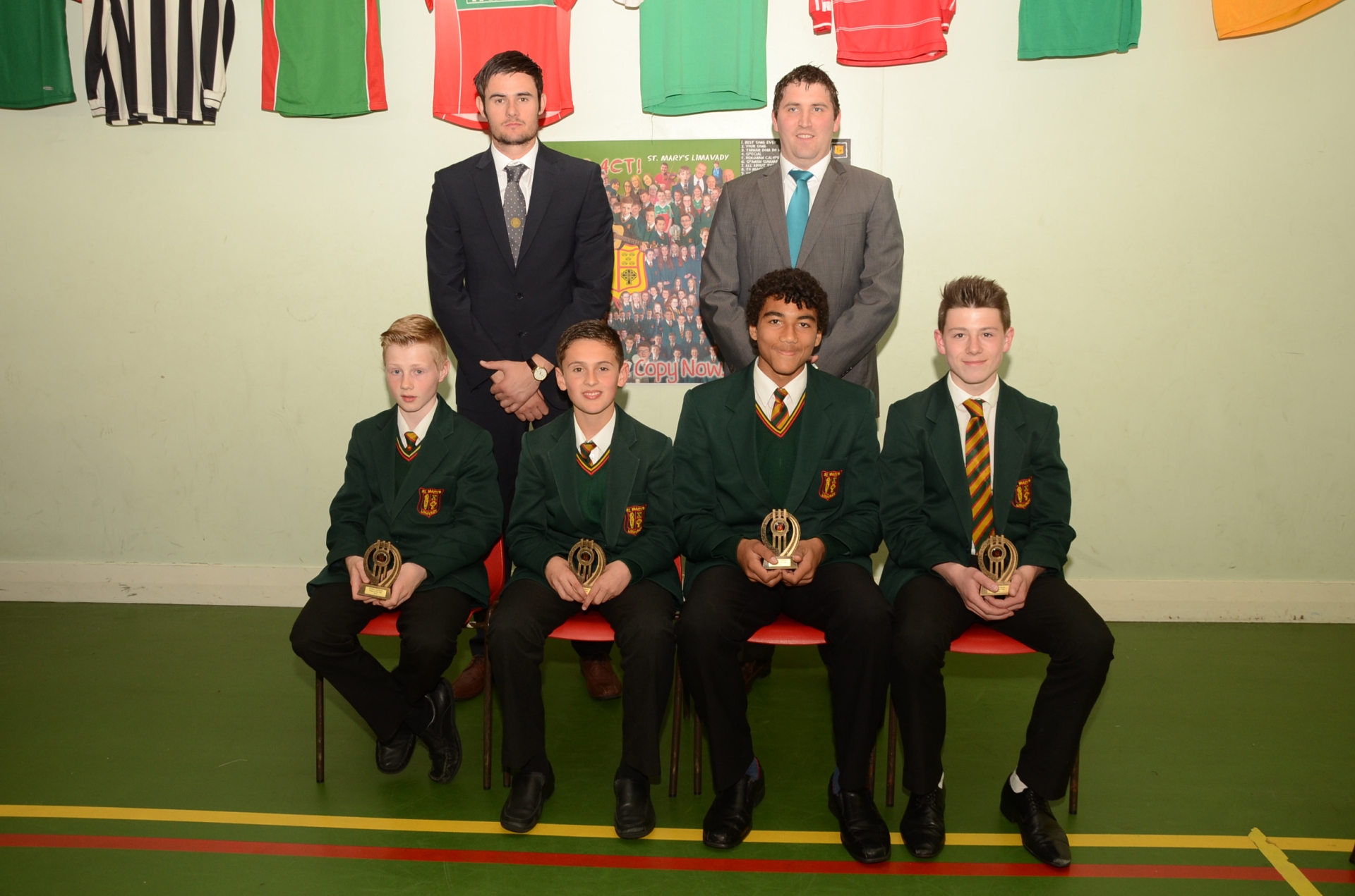 GAA Award Winners Sean Deighan, Collie Mullan, Calum Brown, Mark Creane with Mr. Fearney and Christopher McKaigue