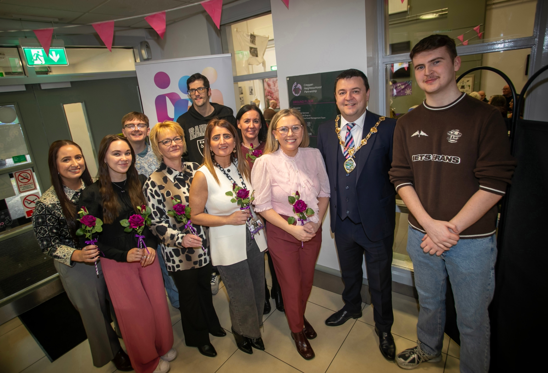 CNP'S INTERNATIONAL WOMENS' DAY EXHIBITION. . . . .The Mayor of Derry City and Strabane District Council, Ruairi McHugh pictured at Monday's Creggan Neighbourhood Partnership's International Woman’s Day Community Exhibition at the Corned Beef Tin. Included from left are CNP management and staff - Paula Moore, Megan Hegarty, Ché McMonagle, Sharon Seal, Stephen Baldrick, Kellie McBrearty, Hayley Burke, Danielle Devine, Mayor, Aaron McCafferty. (Photos: Jim McCafferty Photography)