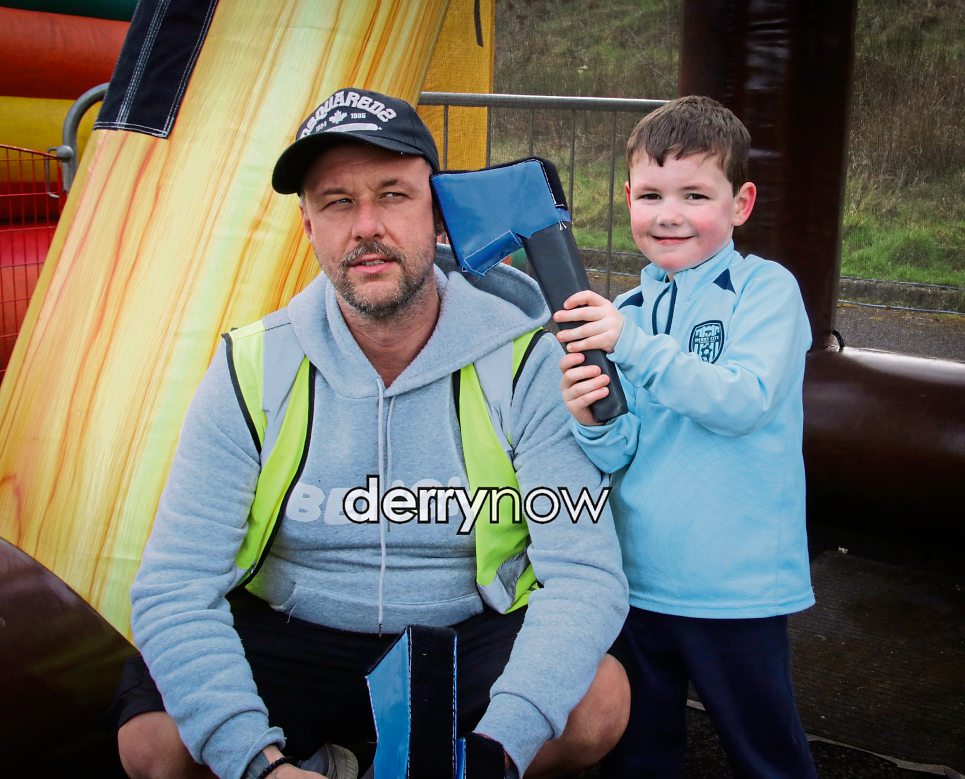 Andrew from “Battle Axe” with Aodhán Tierney at Doire Colmcille GAC Community Fun Day organised by the Glen Development Initiative. (Photos - Deirdre Heaney, nwpresspics)