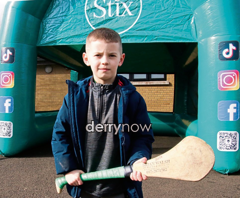 Finn McAdams at the “Stix Hurling” game at Doire Colmcille GAC Community Fun Day organised by the Glen Development Initiative.