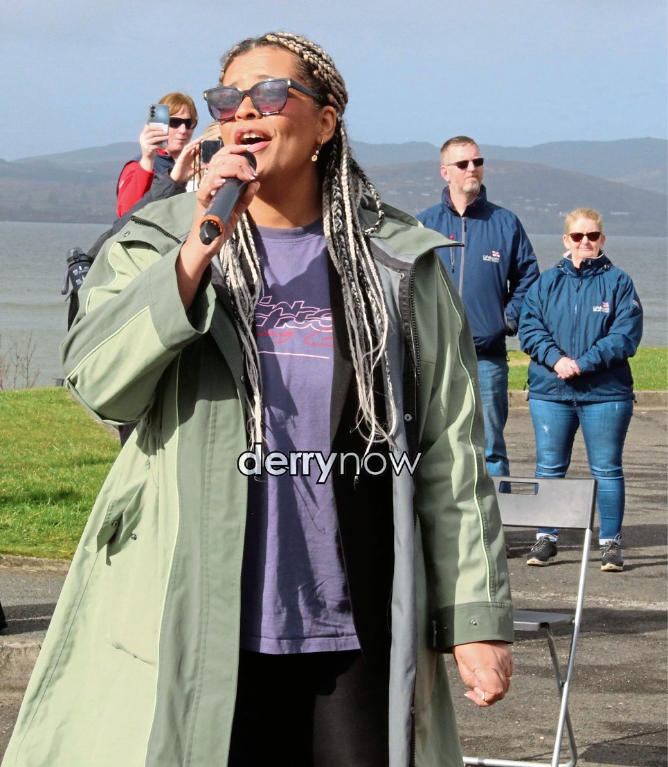 Laura Keogh sings at The 10th Anniversary 5K walk in memory of the Buncrana Pier Tragedy Victims.