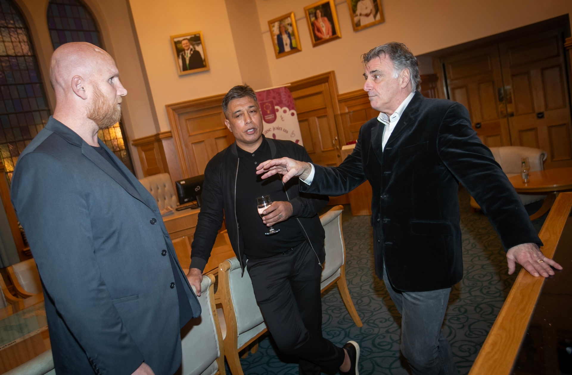 Event MC Felix Healy in conversation with John Hartson and Bobby Petta on Thursday night at the Guildhall, Derry.